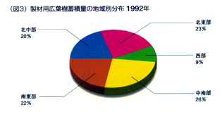 | ■ | これら零細な民有林が合計で広葉樹林全体の73%を占め、残る16%は連邦政府が国民のために保有経営する国有林であるが、州政府、地方自治体などの公共機関が所有している森林です。図3は広葉樹林がいかに東部の州に集中しているかを示すものです。 |