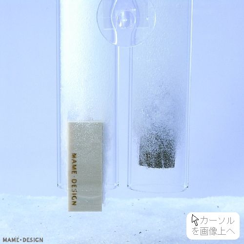 下記の実験では泡が出る面と出ない面がある『マメウッドストーン』と